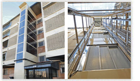 Estructuras modulares para huecos de ascensor. Cerramientos a medida que permiten instalar el elevador adosado a la pared de la fachada o colocarlo en un hueco de escalera. Puede recubrirse con cristal.